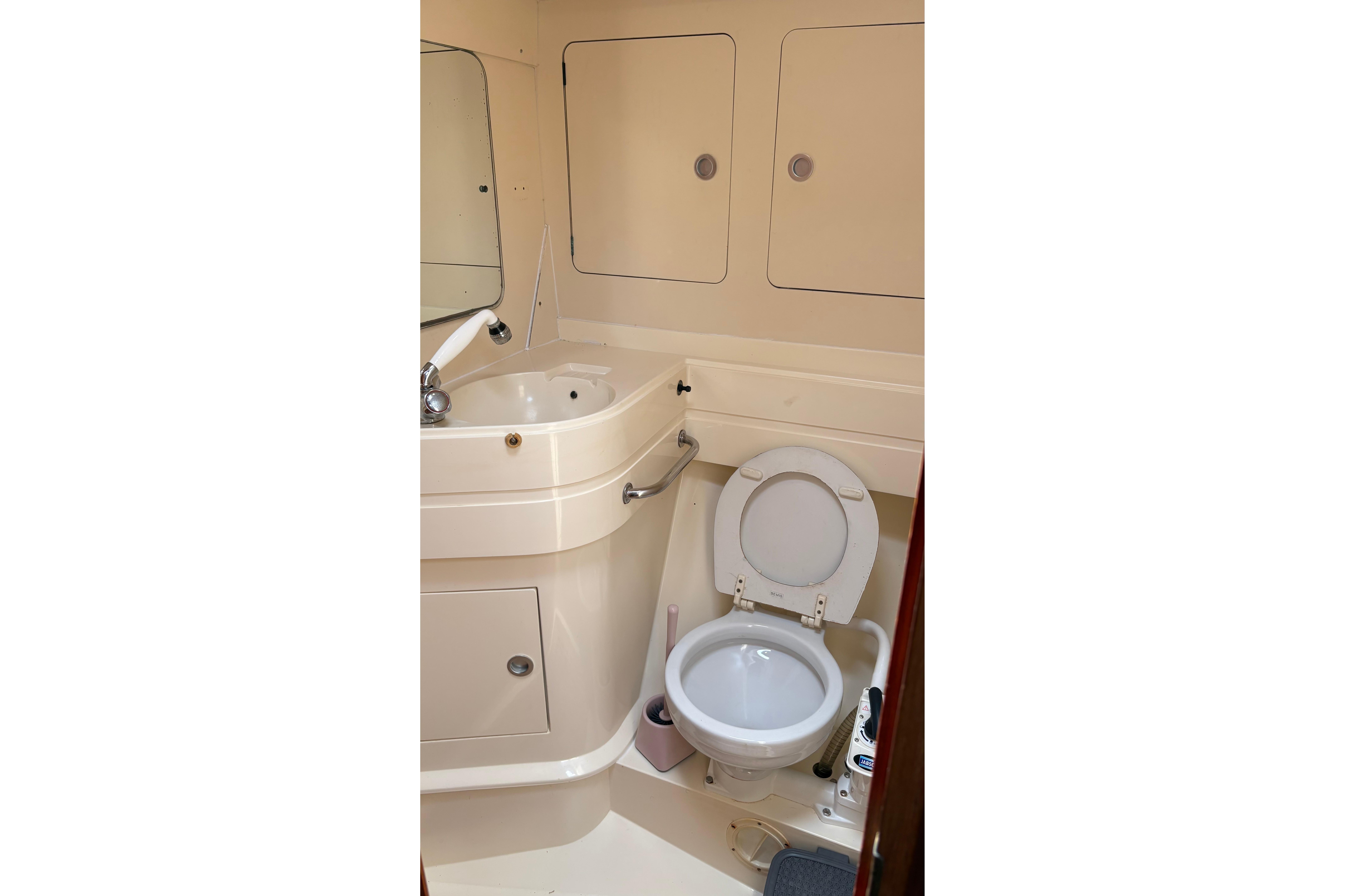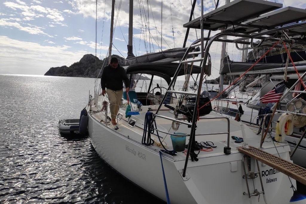 The layout works particularly well for extended Mediterranean cruising, with three separate cabin areas and two heads providing privacy and practicality when hosting family or friends. The generous aft owner’s cabin is a standout feature, and the saloon offers excellent dining and relaxation space at anchor.