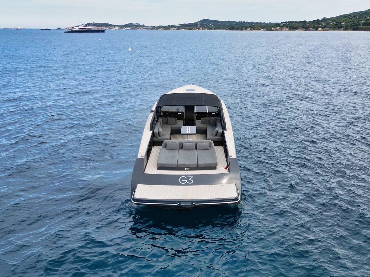 The exterior living areas are a true highlight, featuring a welcoming and elegant cockpit, designed for relaxation and conviviality. A spacious aft sunbed invites guests to unwind, while the forward sunpad offers additional lounging space and remarkable versatility.
